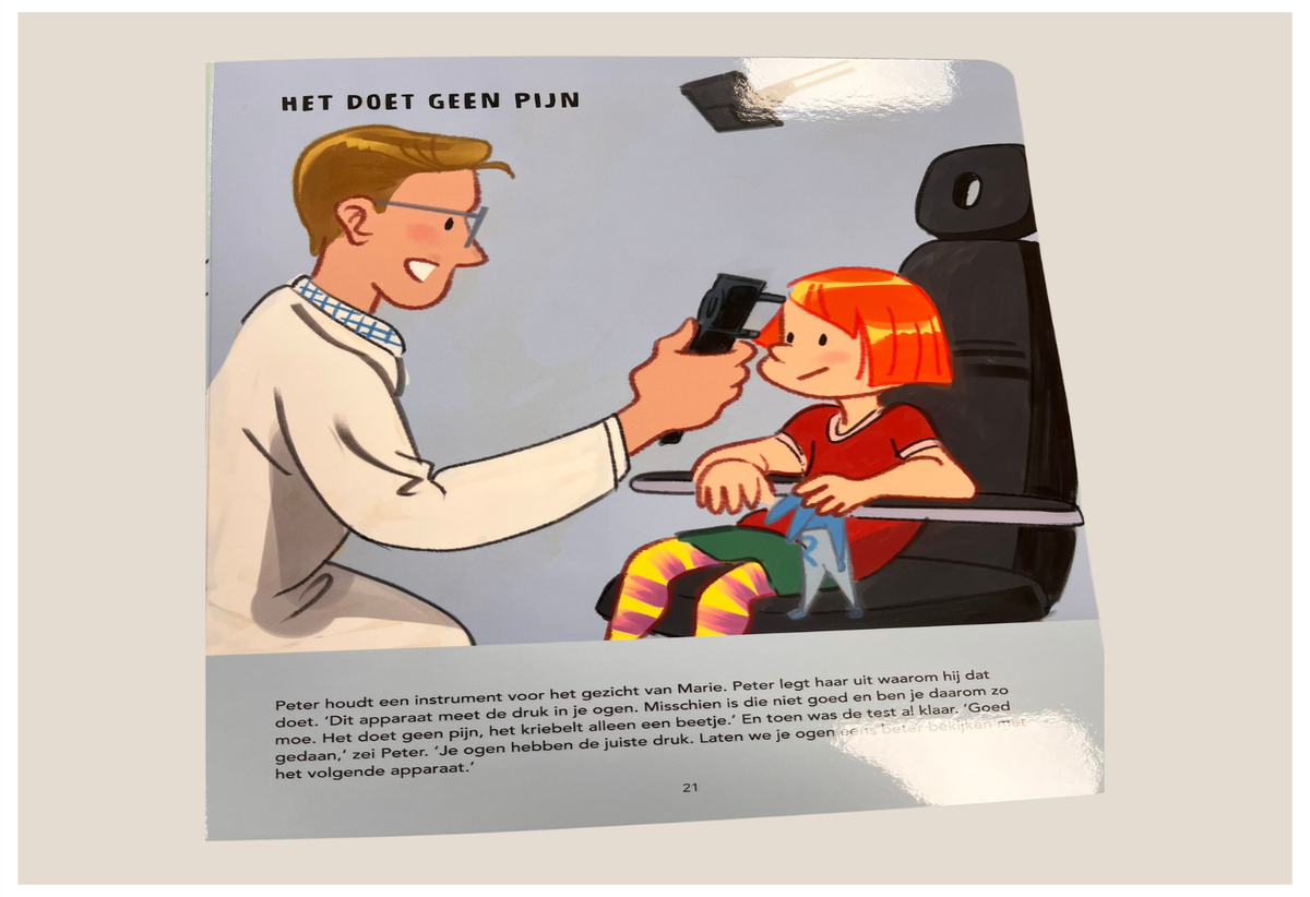 Dit boek is namelijk een goede voorbereiding, zo weten ze wat ze kunnen verwachten en welke testen ze gaan krijgen. Of ook wel leuke spelletje. Zo haal je al veel spanning weg en verloopt de afspraak ook rustiger.